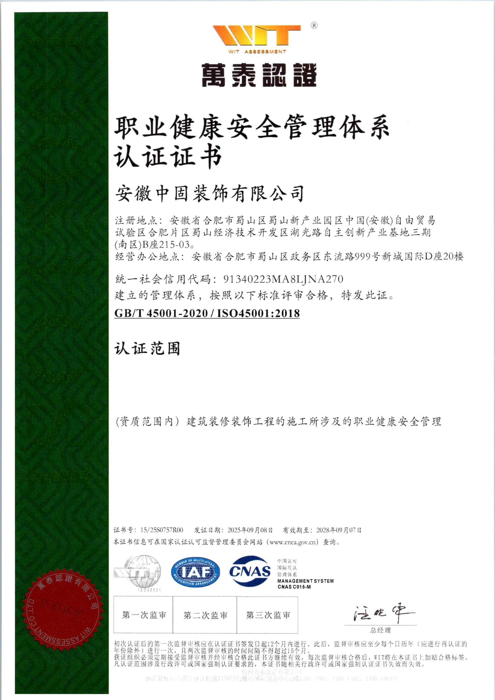 安徽新固获“职业健康…