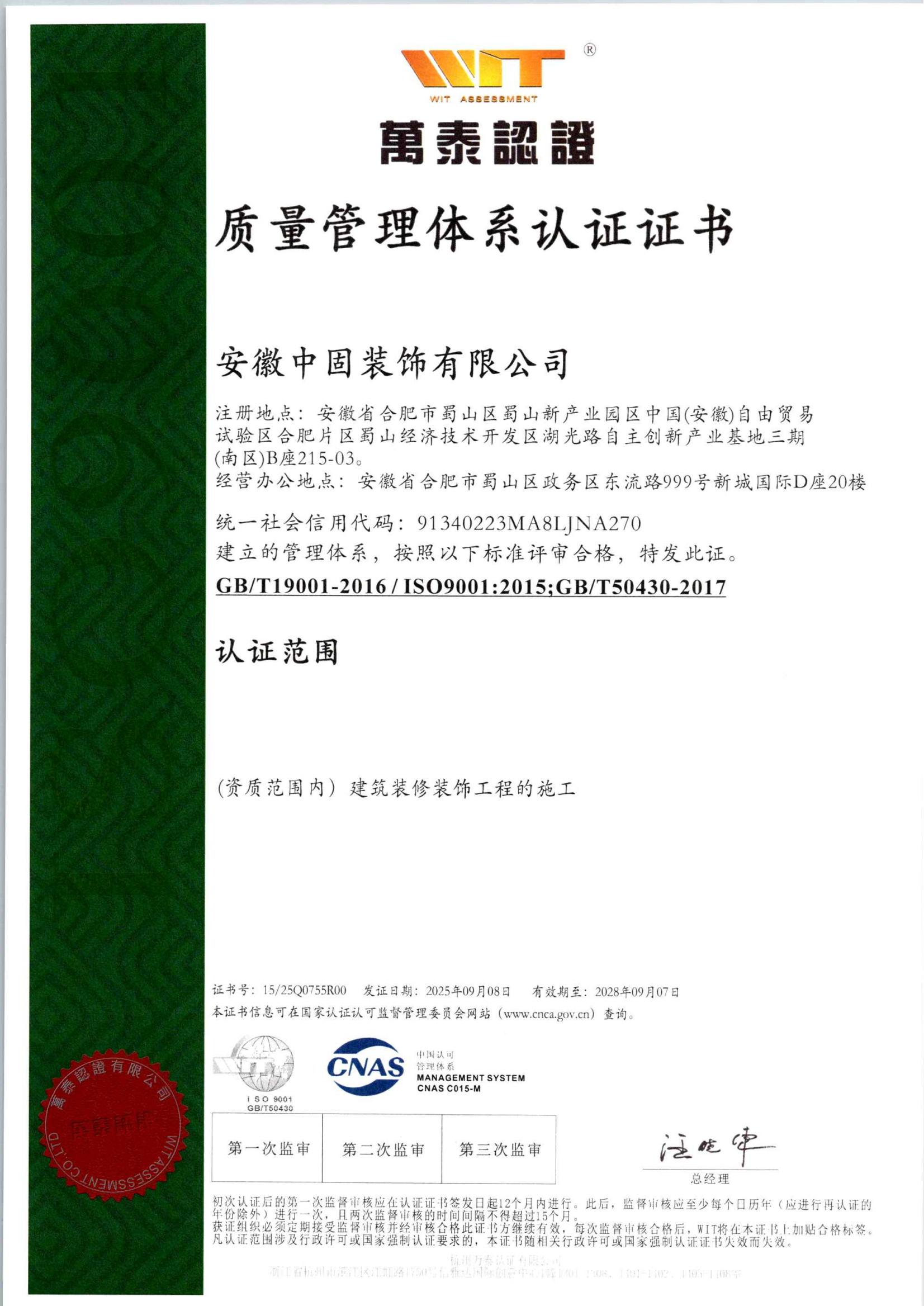 安徽新固获“质量管理…